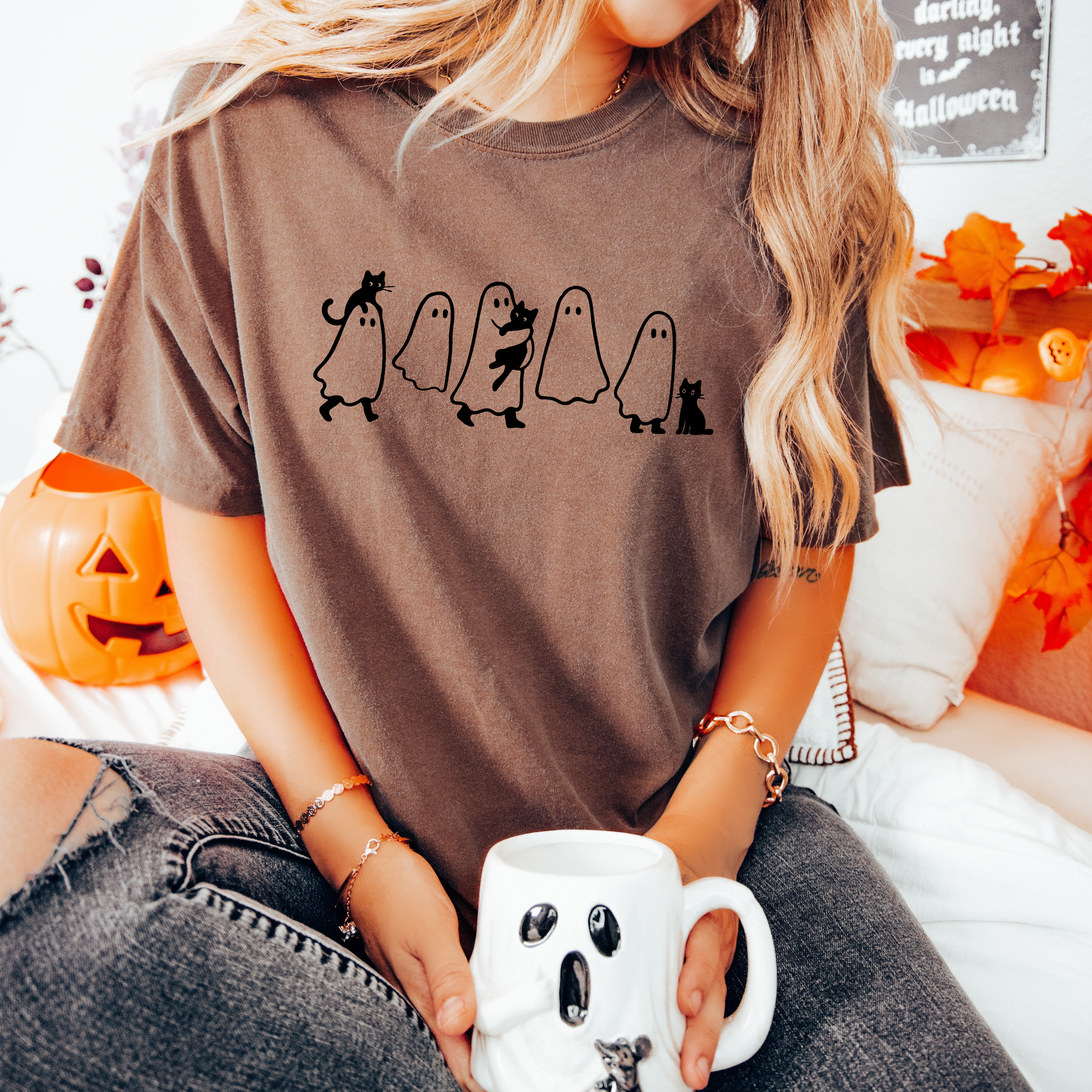 Playful ghosts meet their black cat pals in the Ghosties & Black Cats Tee. A cozy unisex shirt that’s spooky, cute, and perfect for Halloween. 🎃🐱