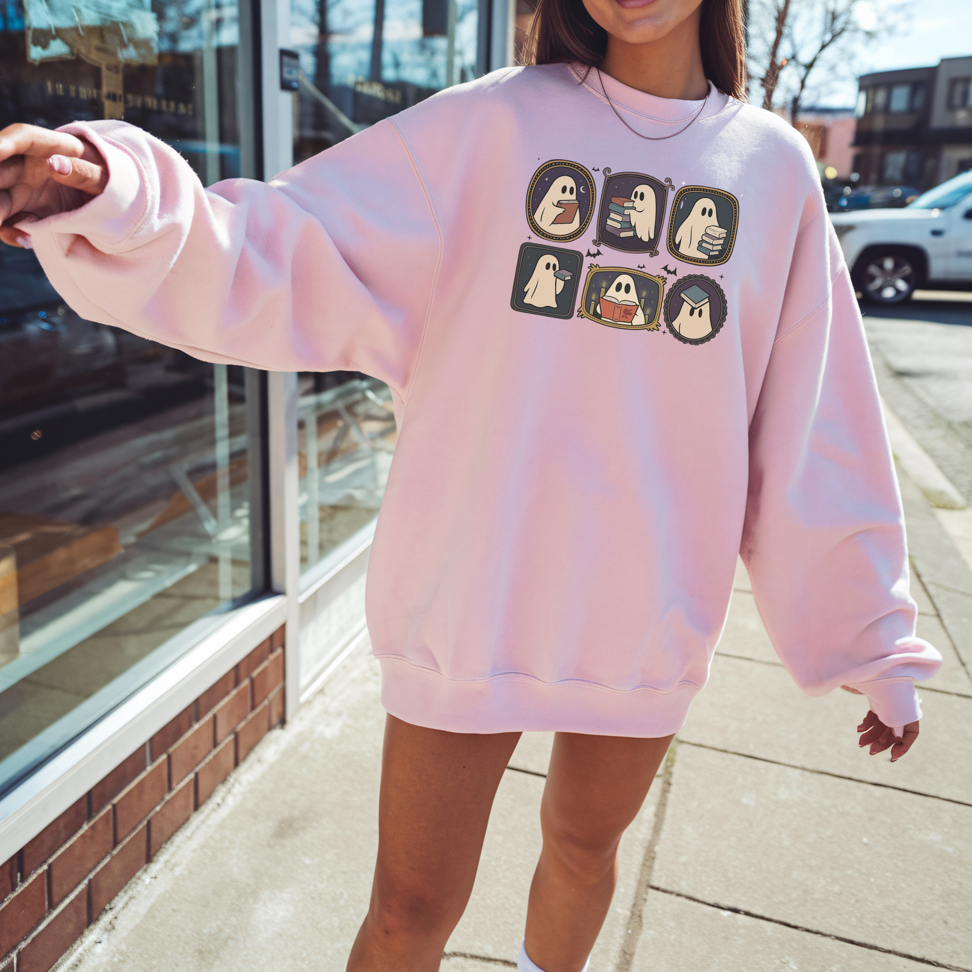 Bookish Ghost Sweatshirt – Spooky Cute Halloween Reading Crewneck