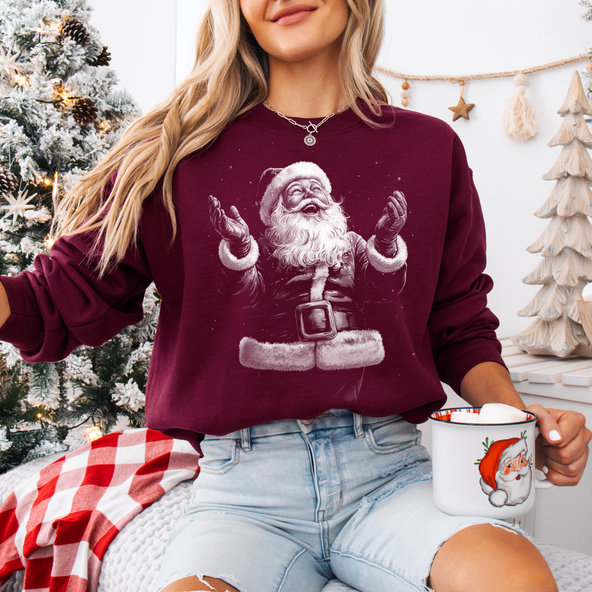 Bring the holiday magic with this soft + cozy Vintage Santa crewneck, featuring a hand-drawn, old-school Santa graphic that feels like it came straight out of a 70s Christmas print. Pairs perfectly with jeans, leggings, or your favorite holiday mug moment.